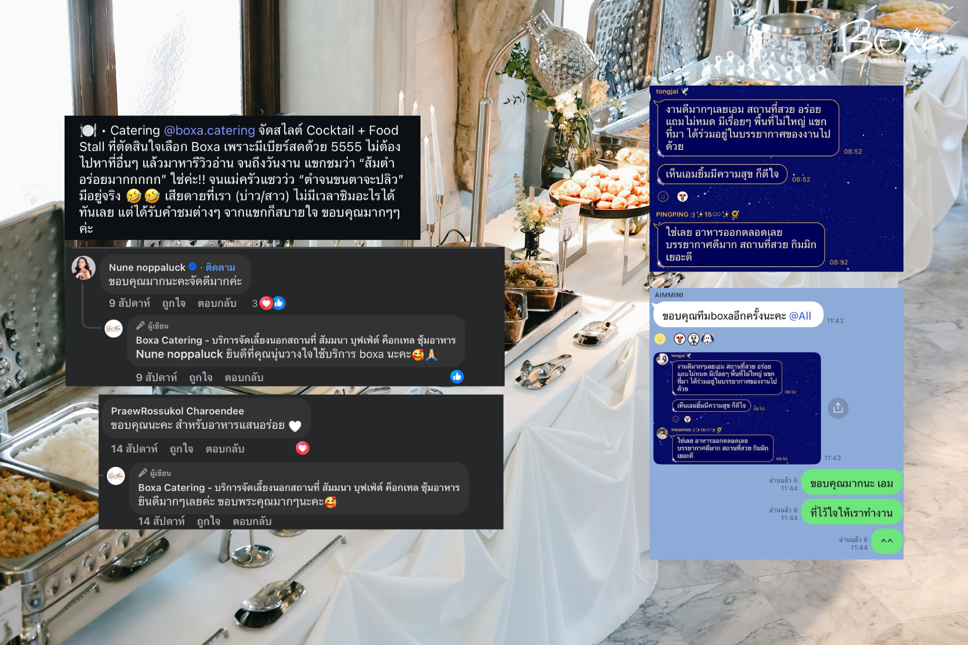 ความสำเร็จของทุกงานคือความภูมิใจของเรา มาดูส่วนหนึ่งของความประทับใจจากลูกค้าที่เลือกใช้บริการ Boxa Catering ในช่วงที่ผ่านมากัน